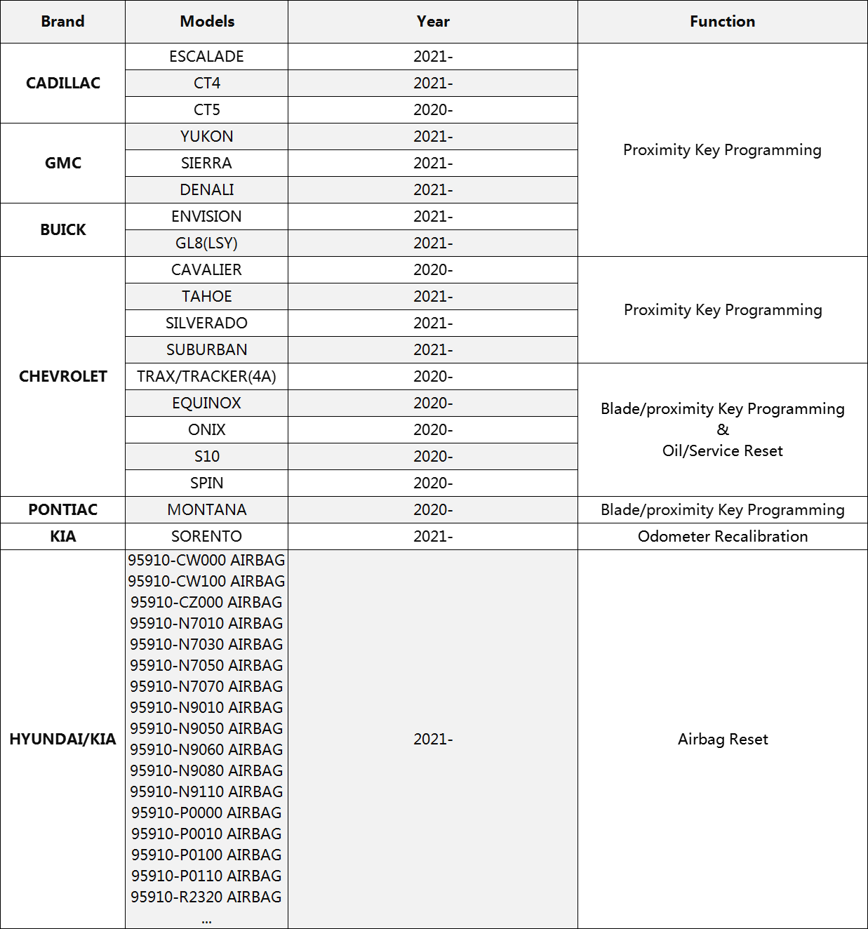 Supported GM and Hyundai/Kia Vehicle Models