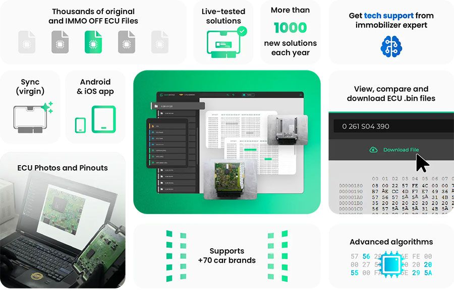 It is a professional software tool designed for automotive workshops, ECU programmers, and locksmiths who need a fast and reliable way to repair ECUs and immobilizer systems as well as get original ECU Files such as EEPROM and FLASH readouts, including IMMO OFF solutions.