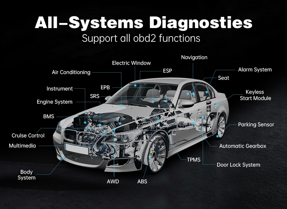 XTOOL A80 PRO Master can works for full systems diagnostic Include : ABS system, Engine system, SAS system , TPMS system , IMMO system , Battery system ,Oil service system , SRS system , ect... Diagnosis functions include: Read DTCs, Clear DTCs, Read datastream, Actuation Test , ECU coding and 30+ Special Function ect...