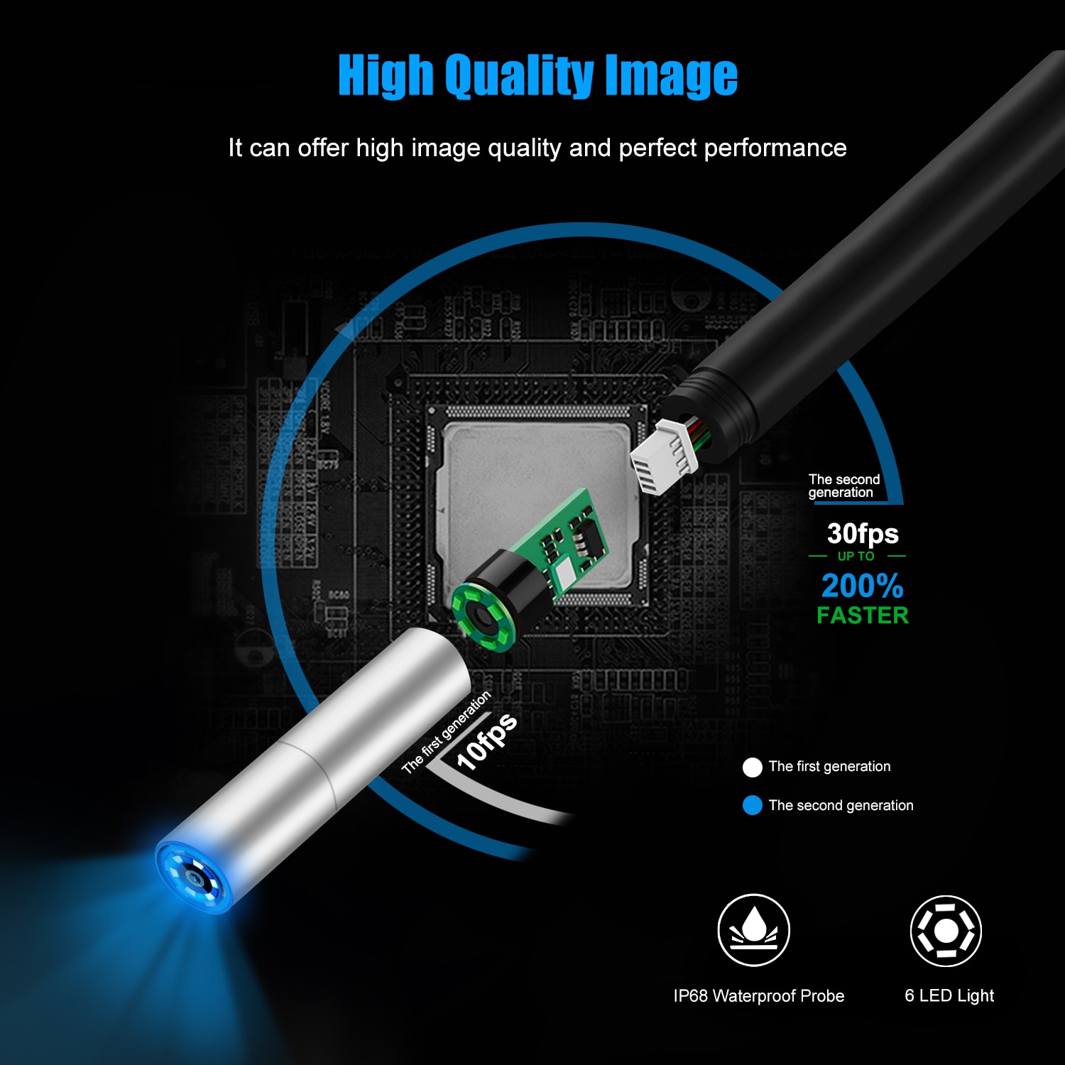 Built-in 4.3 inch color display and rechargeable battery, this hand-held endoscope can be used immediately after booting, no need to use your smartphone to connect the WiFi and no need to download any driver software. So you do not need to worry about dirtying your phone.