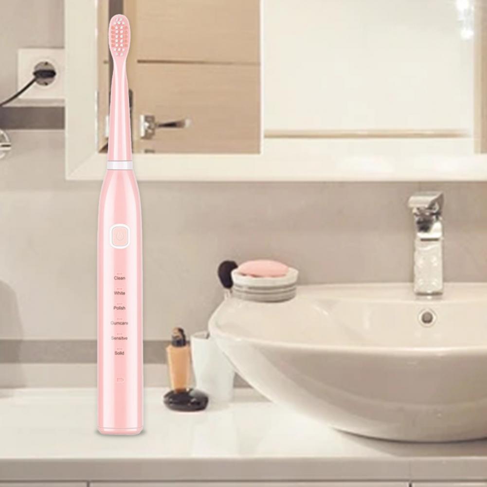 Solid Color Automatic 6 Modes Electric Sonic Toothbrush Low Voltage Motor Toothbrush One-button Start for Home
