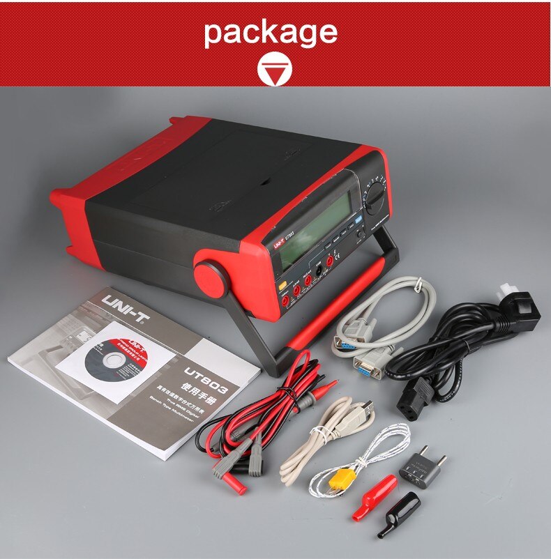 UNI-T UT803 LCD Display Bench Type Digital Multimeters Volt Amp Ohm Capacitance Hz 5999 Counts Tester High-Accuracy PC Soft