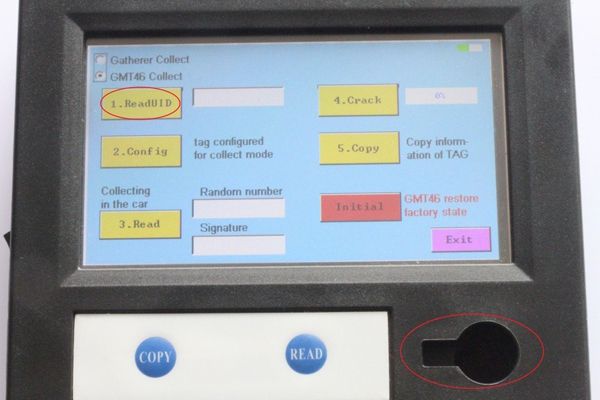 3.1.Put the original chip vertically into the bottom right corner of the hole, click on read UID. Note: Do not going to be flat on the hole nearby, this is not easy to read information inside the chip.