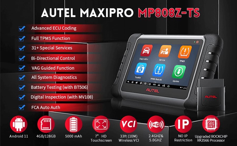 With much less budget spent, Autel MaxiPRO MP808Z-TS can perform ECU coding function which normally only available on models that above MK906BT/MS906BT/MS906TS, and support much more vehicle models than MP808 & MP808BT.