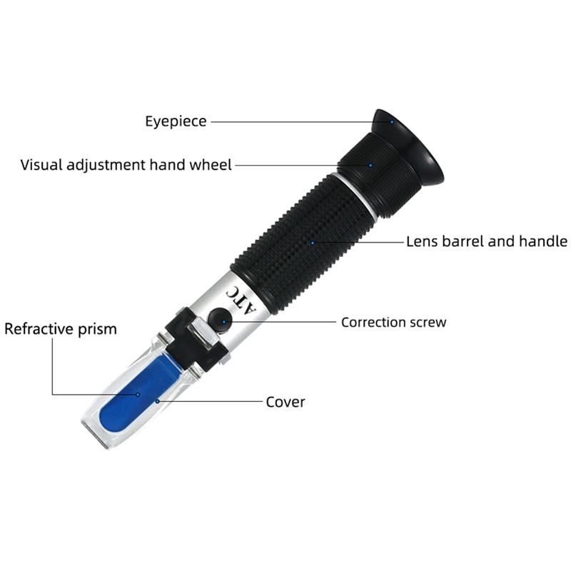 It can help the user monitor the specific percentage of sugar concentration in food and beverages, and is especially practical for people involved with food harvesting, processing and packaging. Using this device you can easily check the ripeness of fruits in the field, or test the concentration of sugar in food and beverages to ensure product quality. It's FULLY EQUIPPED with ATC that automatically adjust itself to correct temperature discrepancies during use. Capable of measuring with high accuracy and provides precise results. It's equipped with vivid and sharp reticle chart for easy and comfortable reading. It uses ambient light only and no batteries are needed. Made by experienced craftsmen and are unlikely to break down! Get a simple, lightweight, handy and precise Brix Refractometer for your reliable sweets index!