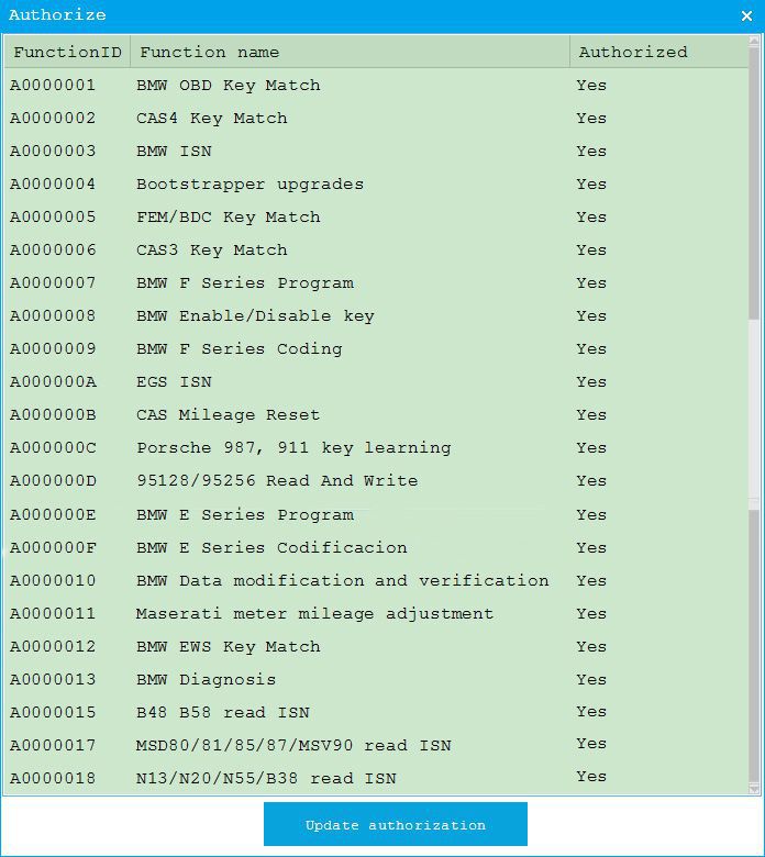 2. Supports BMW EWS Key Match, BMW CAS1/CAS2/CAS3, Supports Key Match and All keys lost for CAS4 /CAS 4+, BMW OBD Key Match, CAS4 Key Match, BMW ISN, Bootstrapper upgrades, FEM/BDC Key Match, CAS3 Key Match, BMW F Series Program, BMW Enable/Disable Key, BMW F Series Coding, EGS ISN, CAS Mileage Reset, Porsche 987/911 key learning, 95128/95256 Read and Write, BMW E Series Program, BMW E Series Coding, Maserati Meter Mileage Adjustment, BMW Data modification and verification, BMW Diagnosis, BMW Diagnose, B48 B58 read ISN, MSD80 / 81 /85 /87 MSV90 read ISN and N13 / N20 / N55 /B38 read ISN
