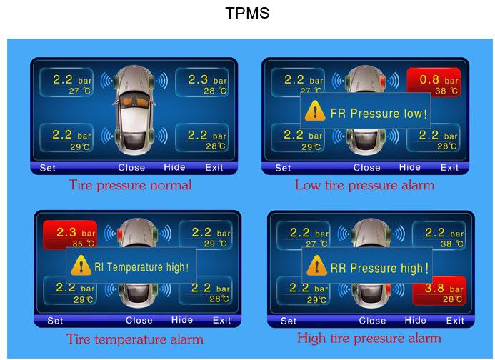 Built-in support for GPS, DSA (Dynamic Safety Alert), TPMS (Tire Pressure Monitoring System), and other advanced driver assistance features.