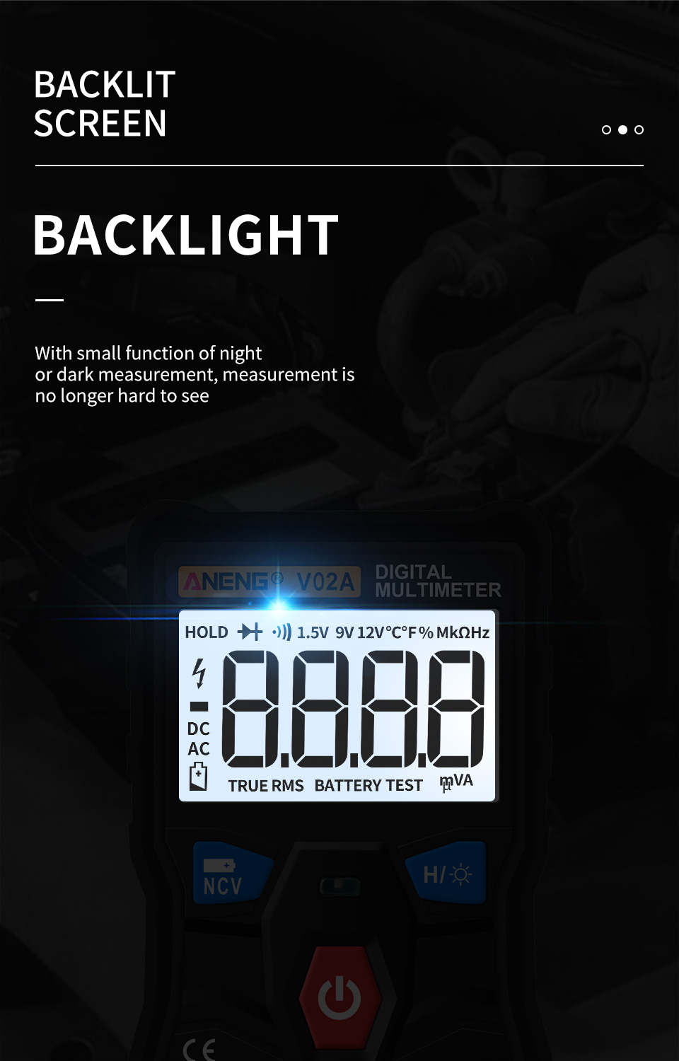 Battery measurement: (1.5V 9V 12V) With current measurement, the accuracy is higher.