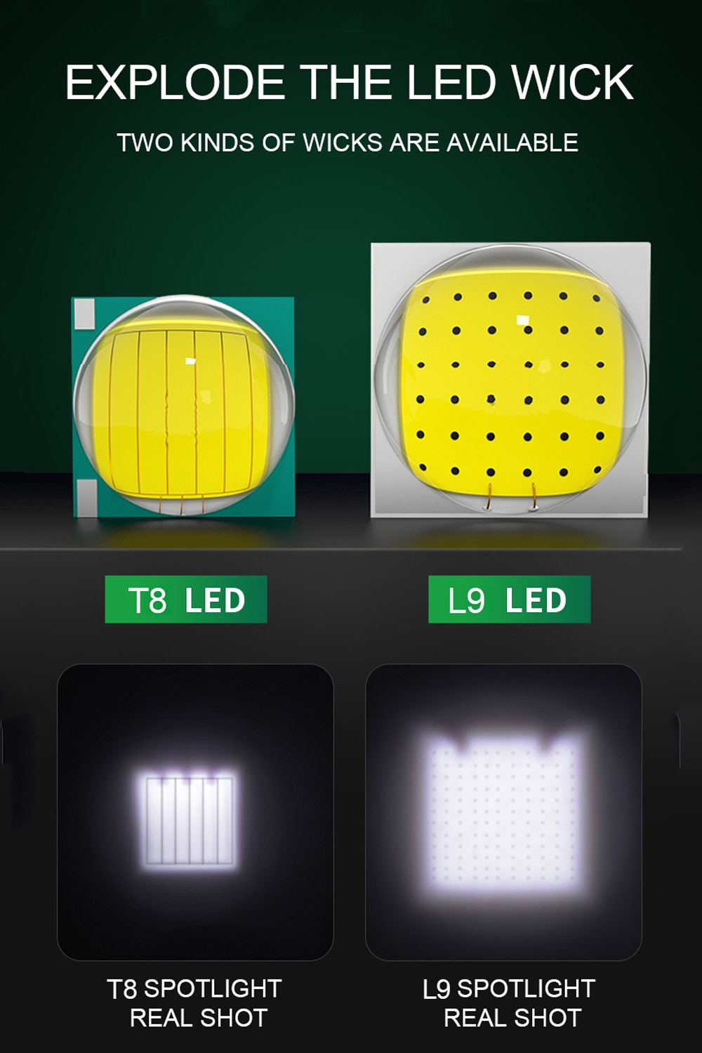 Intelligent T8/L9 wick, brightness upgrade, three levels of brightness can be adjusted freely, the head adopts a real large-diameter light cup, which greatly improves the ability of strong light and long-range, high-quality optical edging glass lens is not easy to scratch, high-energy non-memory lithium-ion battery, power supply Stable and effectively prevent high and low unstable currents.
