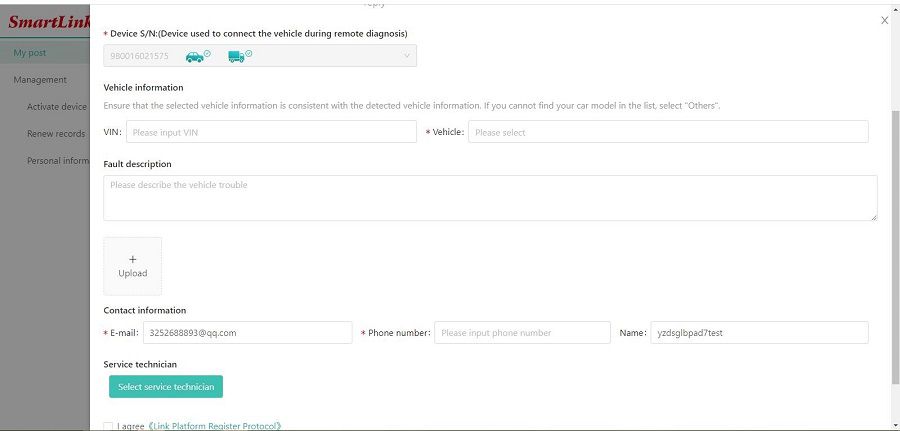 The smartlink remote diagnostic function can only be used after the Smartlink connector is activated through the above method.