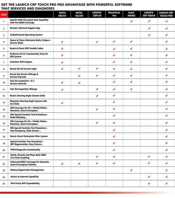 Comparison between Launch CRP Touch Pro and other similar tools: