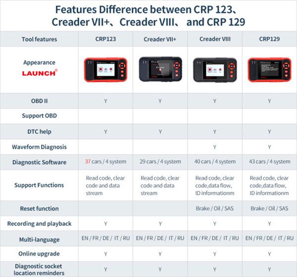 Launch Creader CRP123 vs. VII+ vs. Creader VIII vs. CRP129