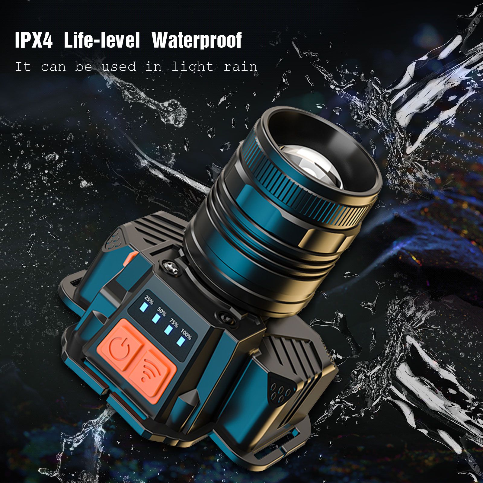 LED Headlamp Big Capacity Strong Light Rechargeable Waterproof Outdoor Night Fishing Long Range Flashlight Miner Lamp Camping Light Sensor Switch Mode