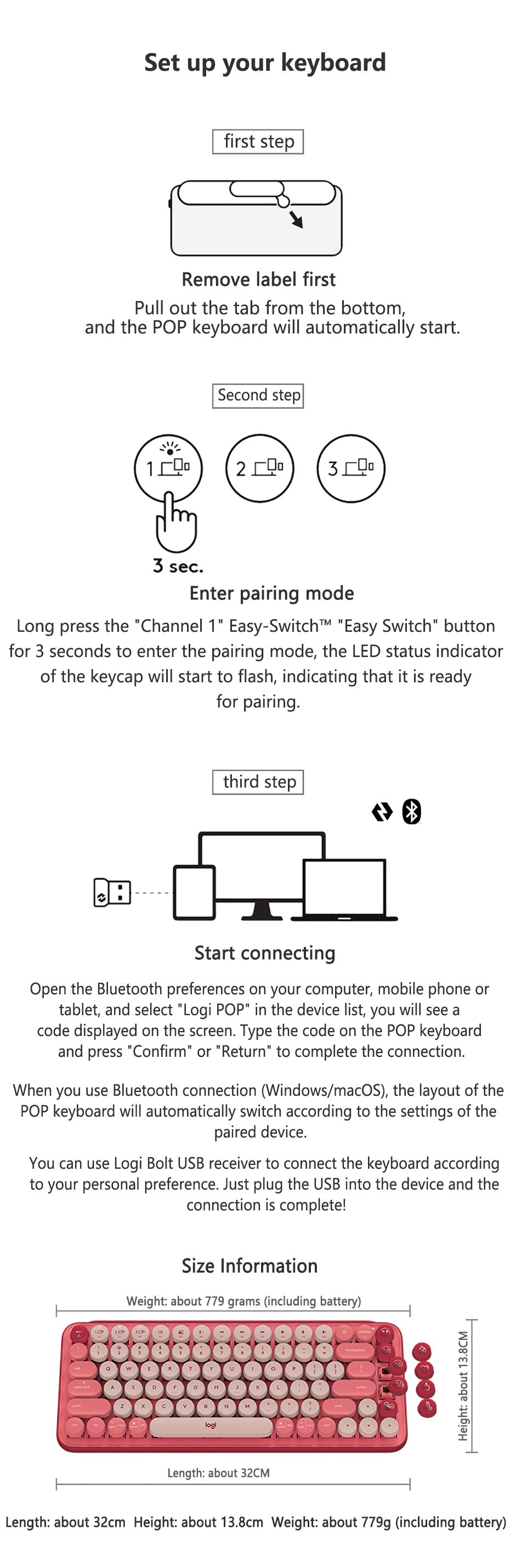 Newest Logitech POP KEYS Wireless Bluetooth Mechanical Keyboard Portable 85 keyboard keys For Ipad Office Gaming Laptop Original