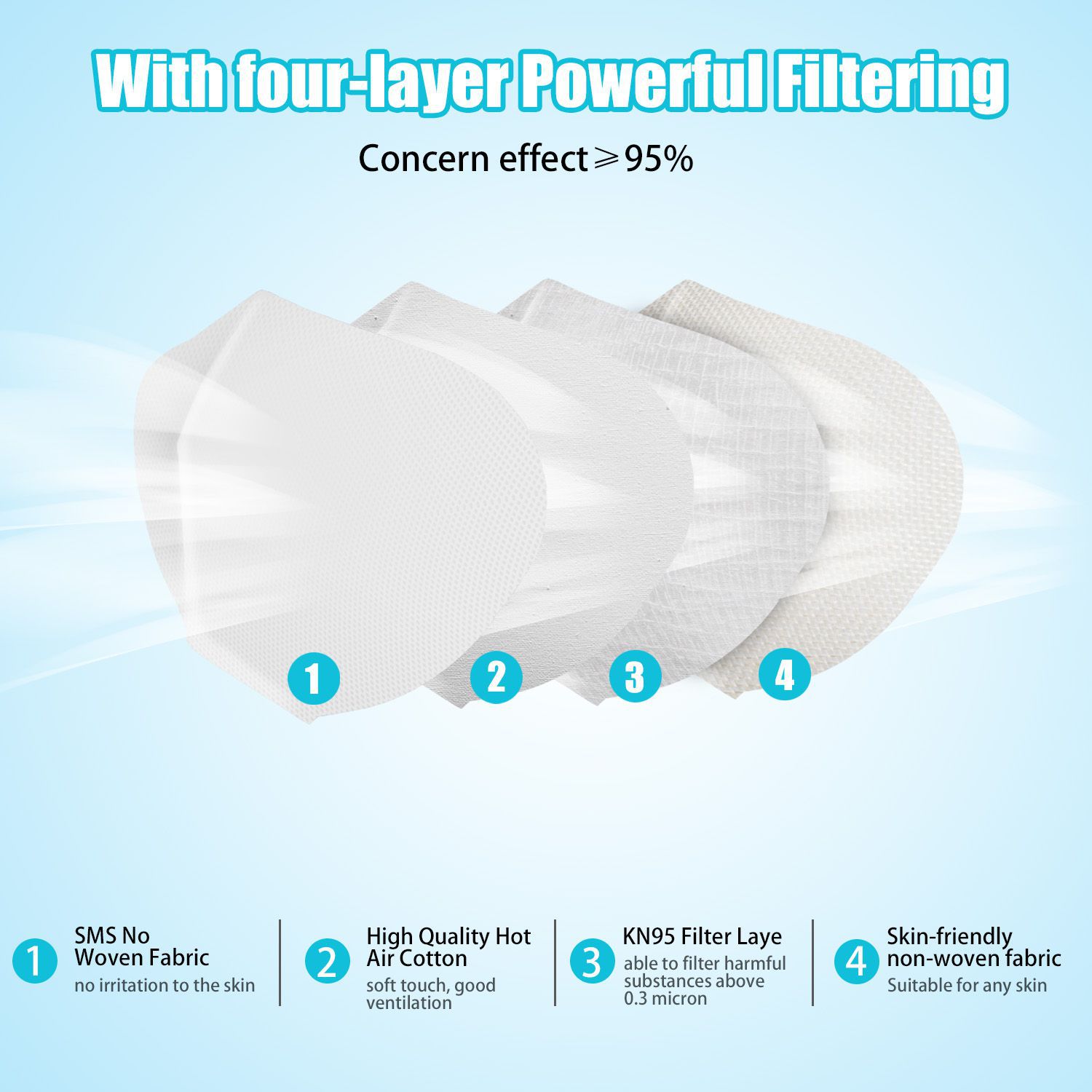 KN95 Masks with 2 pcs Filter Paper - Protection Mouth Mask - Sealed Bag -Protective Face Mask Dust Filter Mouth Cover