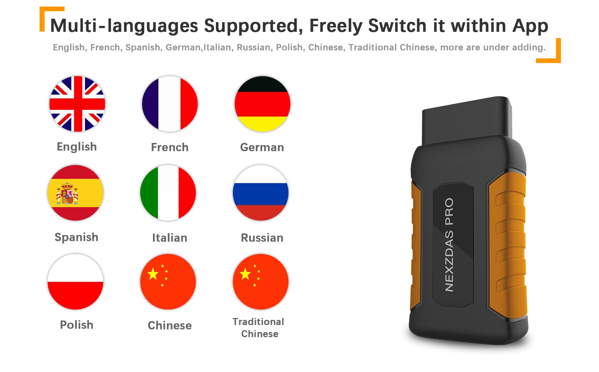 Support 11 languages at present:English,Spanish, Italian, French, Russian, Portuguese, Japanese, German, Polish,Chinese, Traditional Chinese. More are under developing, can up to 23 kinds.