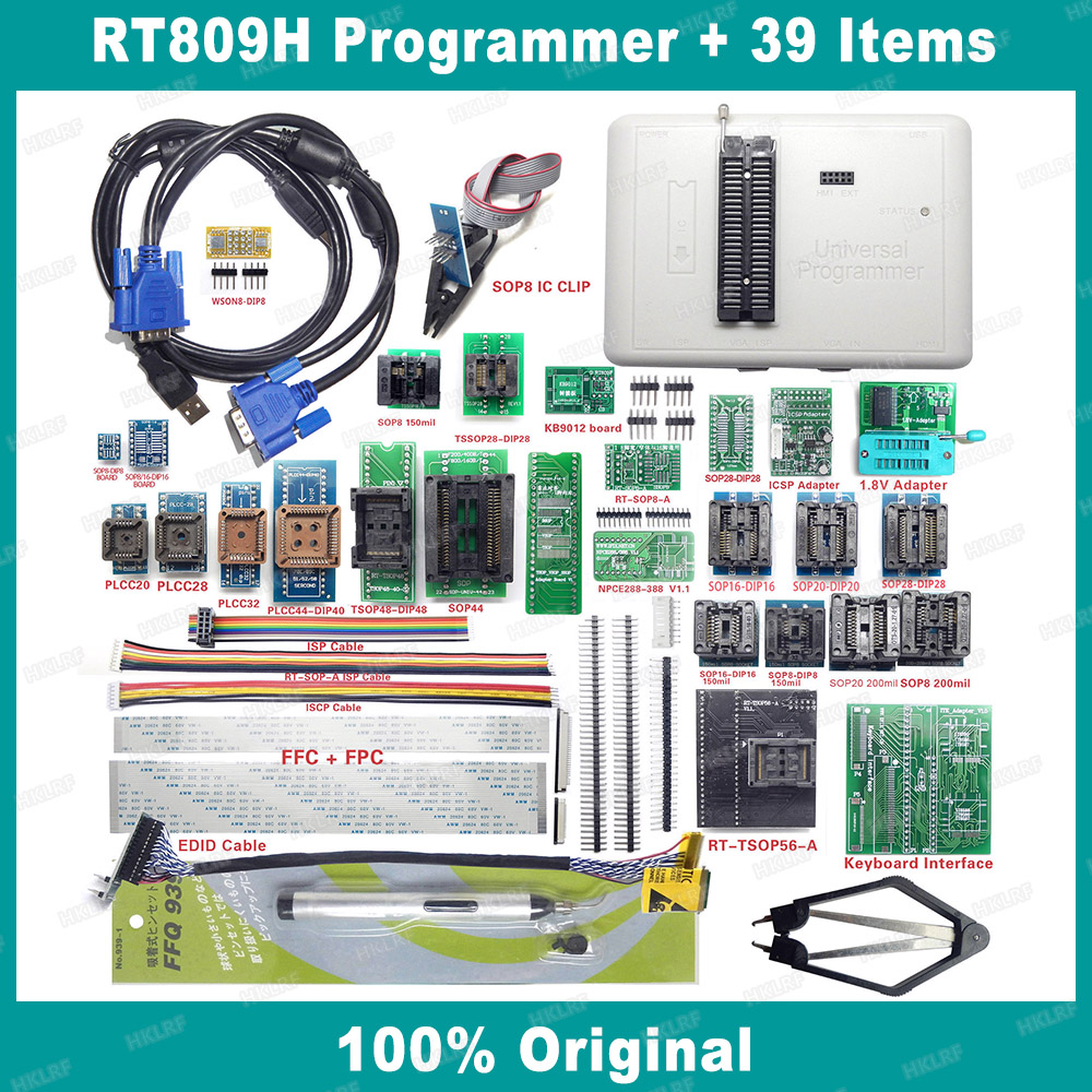 100% Original New RT809H EMMC-Nand FLASH Universal Programmer TSOP56 TSOP48 EDID Cable ISP Header01 VGA HDMI BGA48 BGA63 BGA64 BGA169