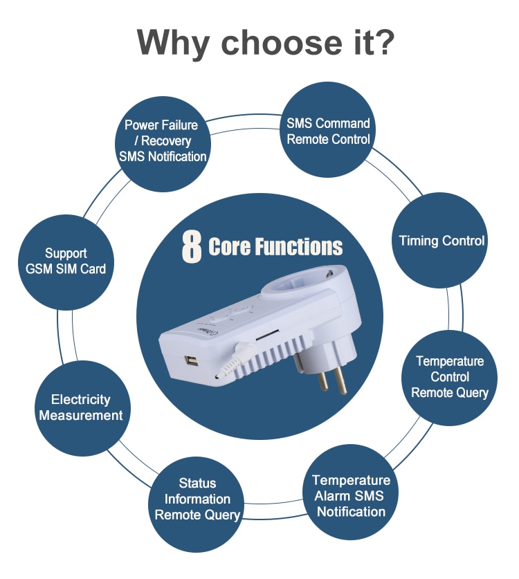 This gsm socket is built in GSM module, control socket by sending SMS command; you can use mobile phone to control electric appliance at any time and any place.