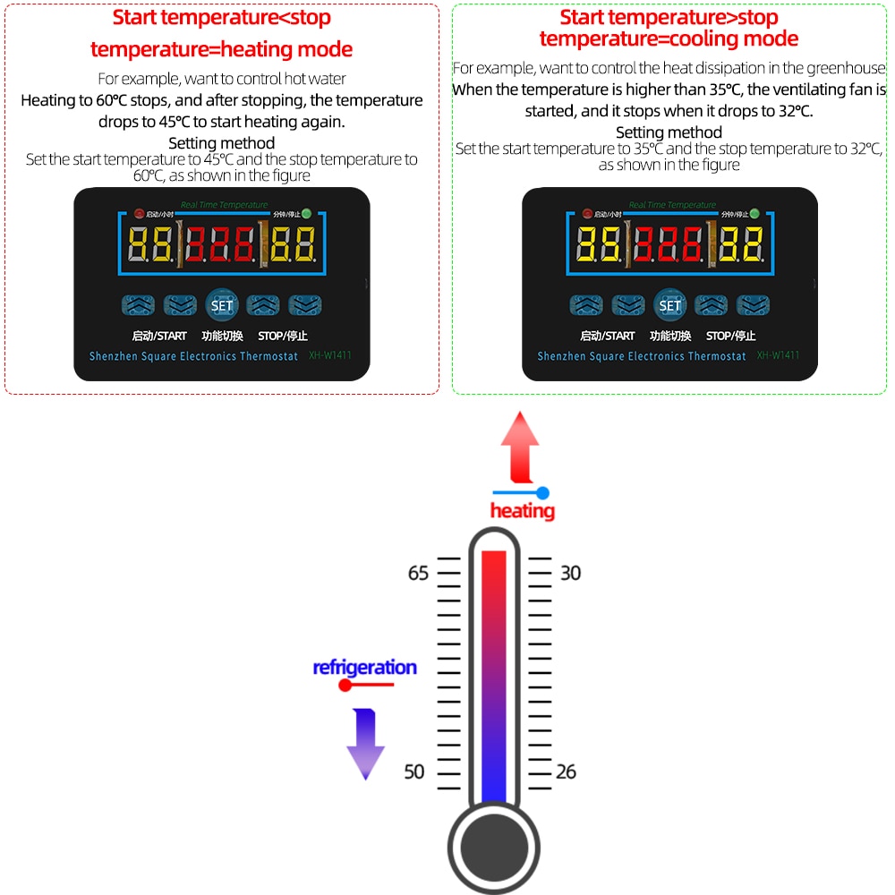XH-W1411 DC12V 220V heat cool temp thermostat control switch temperature meter controller for greenhouses aquatic animal husbandry