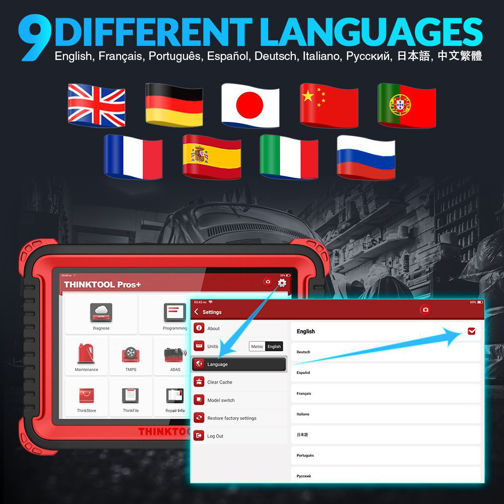 Multi-Language supported You can select the language of your country to operate THINKCAR THINKTOOL PROS+ with one click