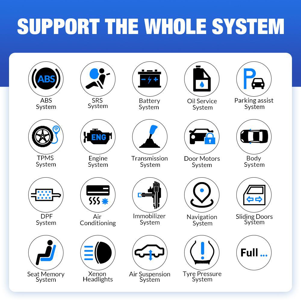 Engines/Auto Transmission/Airbags/Immobilizer/Key Coding/ABS/Cruise Control/Instruments/ Self Leveling Suspension systems/Seats/Doors/Gateway/Steering Angle/Air Suspension/Body Systems/Electronic Power Steering & Motor Assisted/Power Steering/Tyre Pressure/Rain Sensors/4WD System/Stabilizer/Intelligent Parking Assist/Door Motors/Audio Systems/Air Conditioning/Tiptronic/Anti Theft/Soft Top/Headlamp Leveling/Central Locking/Automatic Clutch/ DPF Reset/Electric Windows/Plip Programming/Heated Rear Window/Xenon Headlights/Wash Wipe/Fuel Burning Heater/Transfer Box/Seat Memory/Oil Life Service Reset/Sliding Doors/Electronic Throttle/Navigation System/Rollover Sensor/Cruise Control/ Multi Function Steering Wheel/Aux Heating/Electronic Parking Brake/Clutch Electronics etc.( Great for car repair shops and mechanics to improve business)