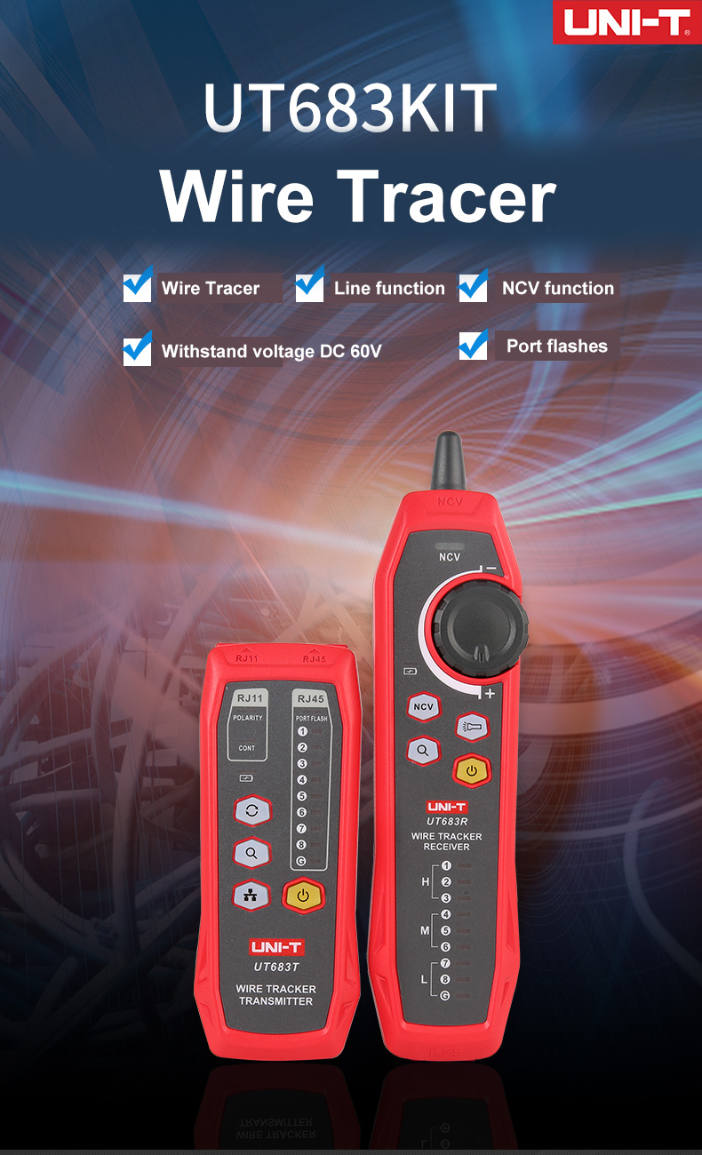 UNI-T UT683KIT Lan Tester Network Wire Tracer Cable Tracker RJ45 RJ11 Telephone Line Finder Repairing Networking Tool
