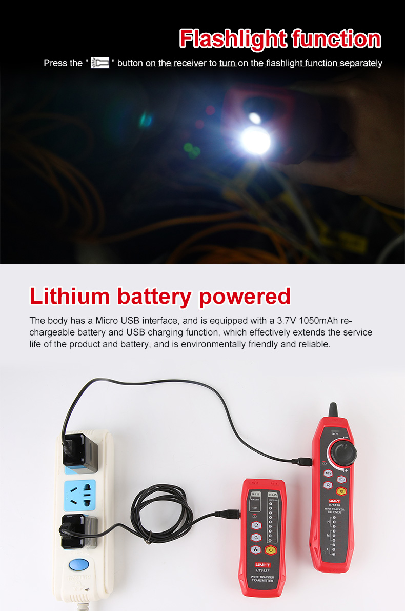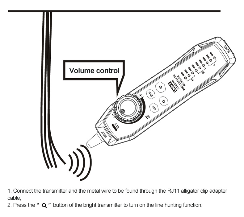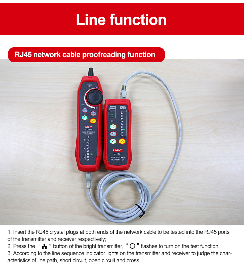 The device is an intelligent wire tracker which consists of the transmitter and receiver, this kit is designed with strong anti-interference ability. The receiver can quickly and accurately locate the target cable. This kit can automatically identify open, short, polarity, and quickly distinguish cable failure.