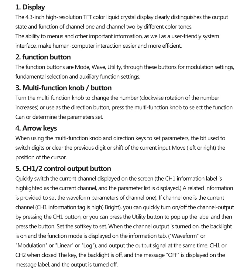 | Arbitrary | 1μHz~10MHz | 1μHz~10MHz |