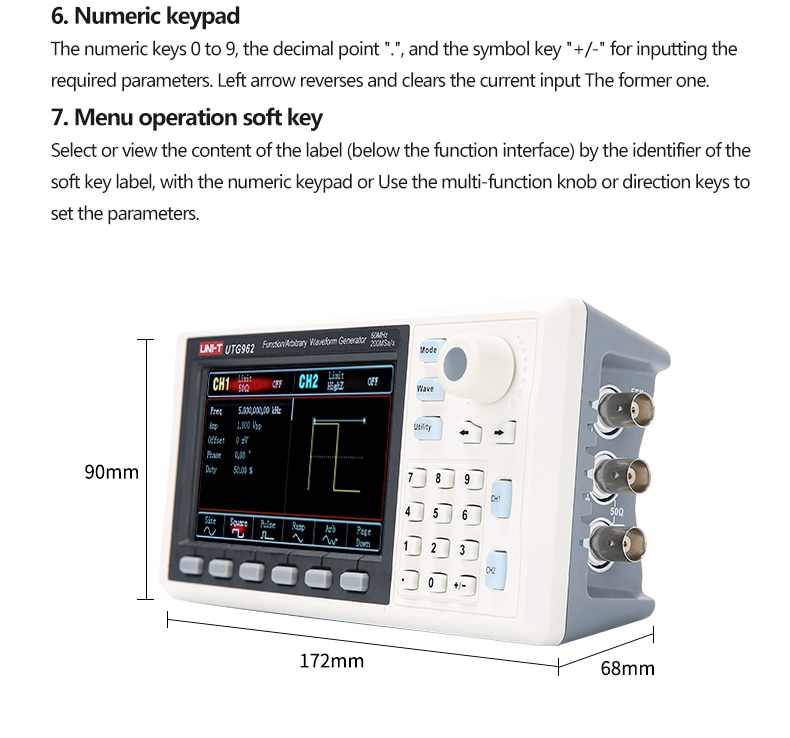 UNI-T UTG932 UTG962 Function Arbitrary Waveform Generator Signal Source Dual Channel 200MS/s 14bits Frequency Meter 30Mhz 60Mhz