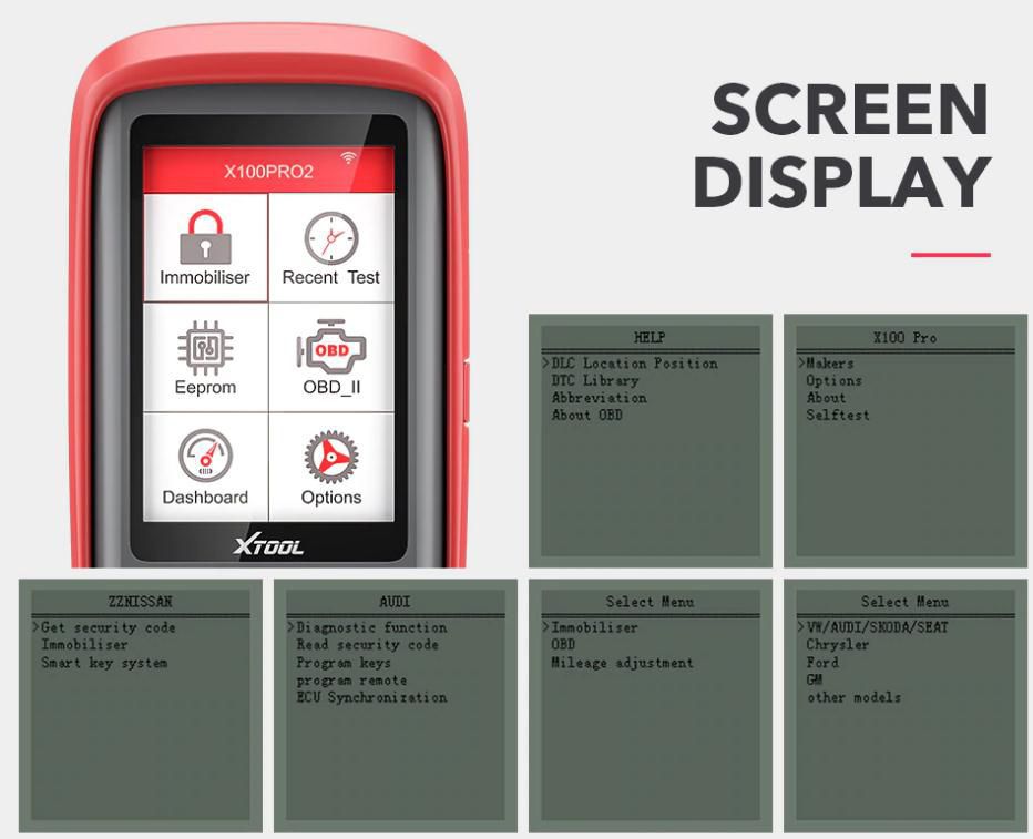 X-100 Pro2 Auto Key Programmer is a hand-held device for programming keys in immobilizer units on vehicles. This scan tool has a simple and robust design, to make your vehicle service experience much easier!